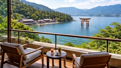 Enjoy a luxury room with direct views of Itsukushima Shrine, where ocean sunsets, peaceful mornings, and Japan’s floating Torii Gate create an unforgettable stay.