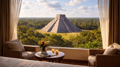 Wake up to stunning views of El Castillo from the best hotel rooms in Mexico, designed for comfort and ease.