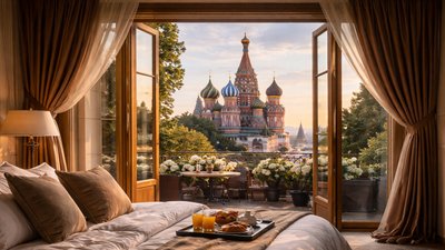 Luxury stay with stunning Saint Basil’s Cathedral views modern comfort, elegance, and unforgettable Moscow moments.