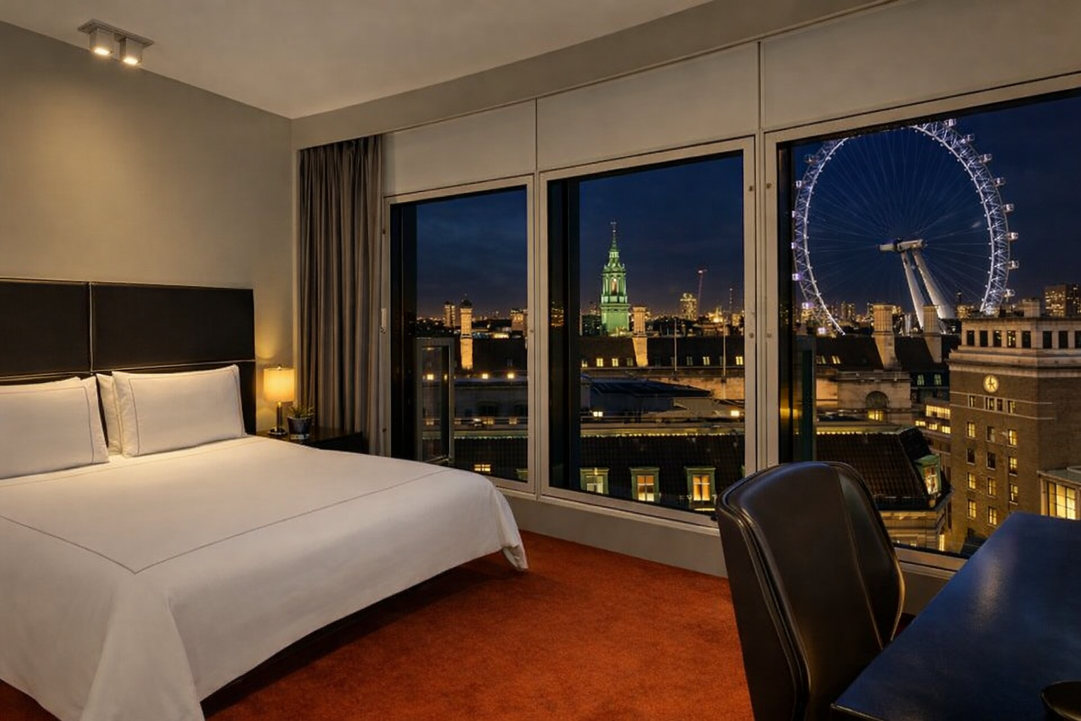 The hotel offers a wide range of modern rooms and suites designed for relaxation and elegance. Guests can choose from river-view and London Eye–facing rooms that showcase stunning cityscapes, especially during sunset and nighttime. Floor-to-ceiling windows enhance the experience, allowing natural light and panoramic views to define the stay. These thoughtfully designed rooms make Park Plaza Westminster Bridge London a top contender among the Best Luxury Hotels with views of London Eye for couples, families, and business travelers.